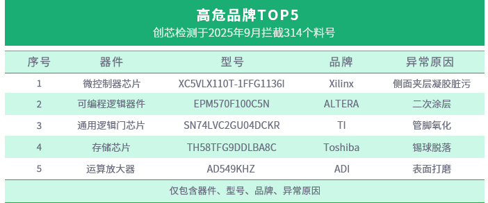 为了使更多客户了解异常物料信息,创芯检测对外发布元器件异常品质分析报告,希望能帮助您预警风险,确保安心购物,避免购买不合格器件。